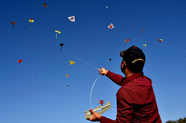 2月1日,在孟加拉国考克斯巴扎尔,当地群众在放风筝。“放飞春天的梦想”风筝节当日在孟加拉国考克斯巴扎尔举行。